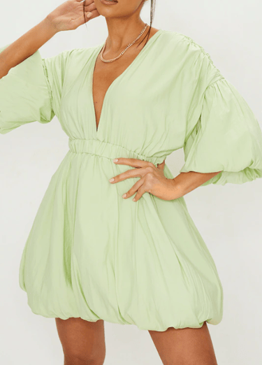 Cette jolie robe ballon avec son col en V et sa taille élastique est idéale pour la saison printemps/été : À porter avec une ceinture large et des talons pour une tenue chic et élégante ou à associer avec une paire de baskets pour un look plus décontracté.